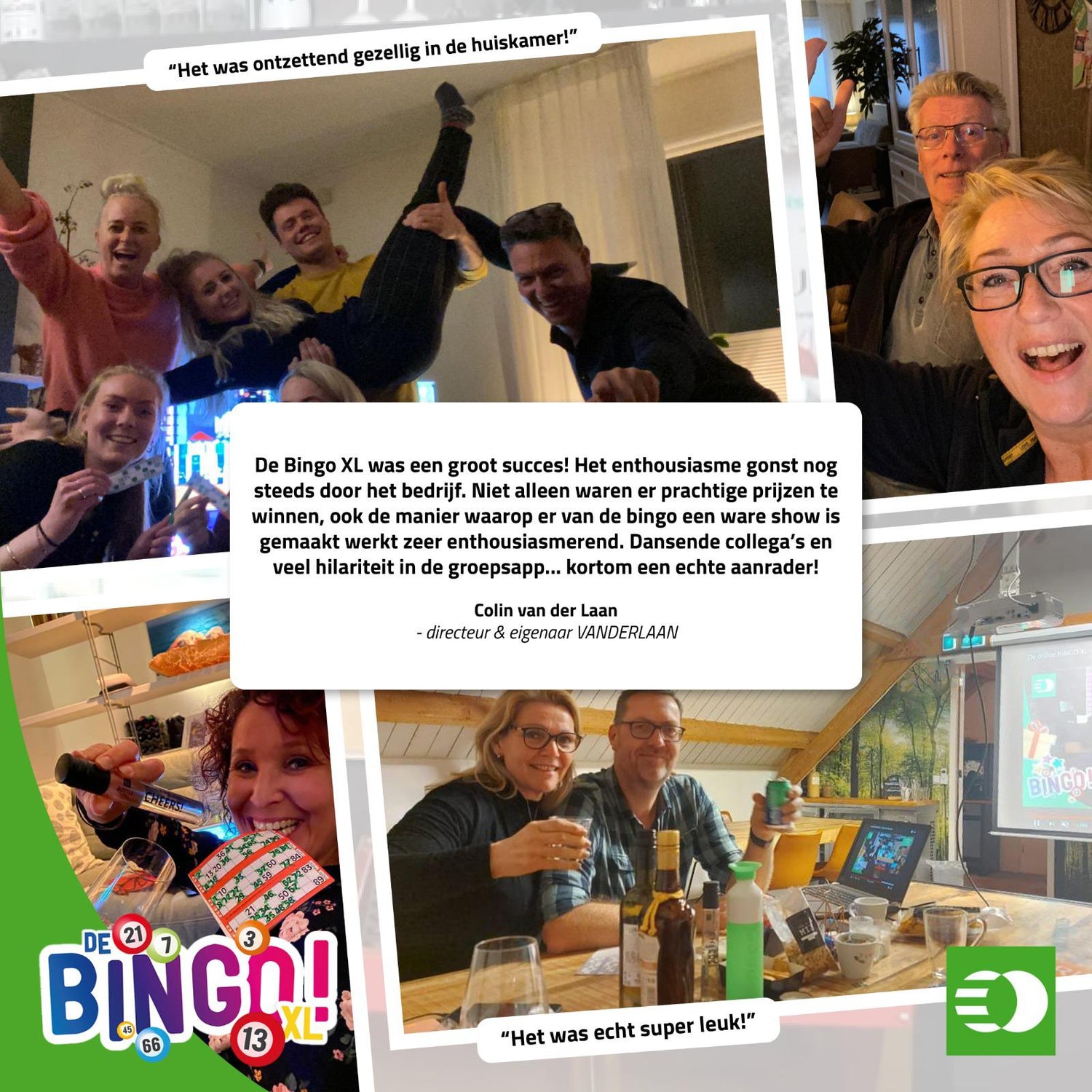 Een ideale oplossing voor bedrijven die bijvoorbeeld door het hele land medewerkers hebben wonen. Onze online edities kunnen vanuit huis of op locatie worden gespeeld en worden gestreamd vanuit onze eigen studio! Vele bedrijven gingen je voor en waren razend enthousiast!